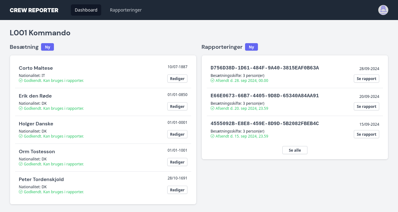 Systemet til rapportering af besætningsskifte på fartøjer. Indberet ændringer i besætningen med få klik og slip for besværet med at holde styr på papirer og dokumenter.